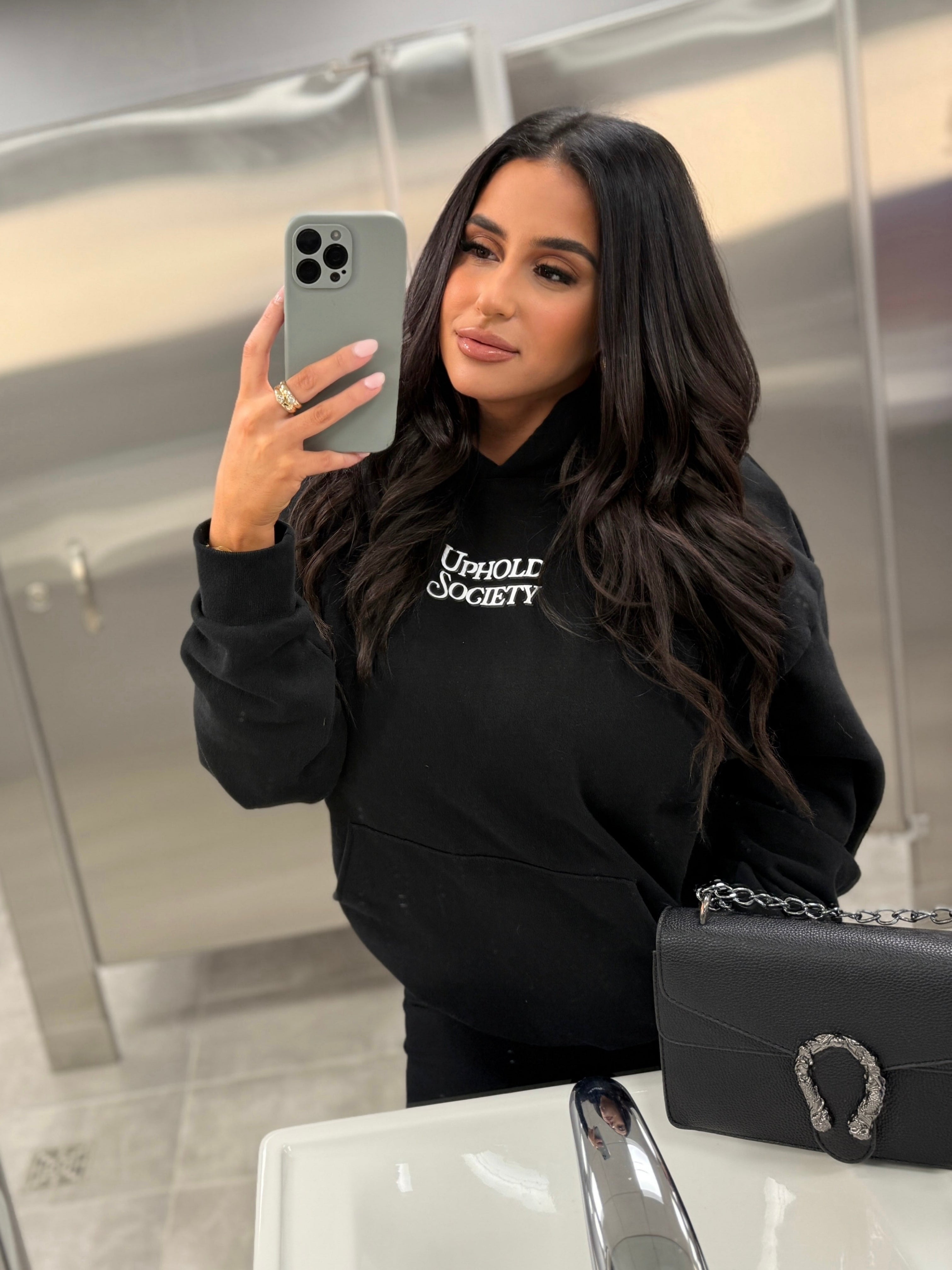 "I am obsessed with this hoodie! Love the fabric, perfect heavyweight feel. I'm 5'4" and typically wear a size large if I'm looking for an oversized fit, but for this I decided to size up and order an XL so it was really oversized. This is after 3 washes and has stayed true to feel and coloring! Definitely my new go to hoodie!